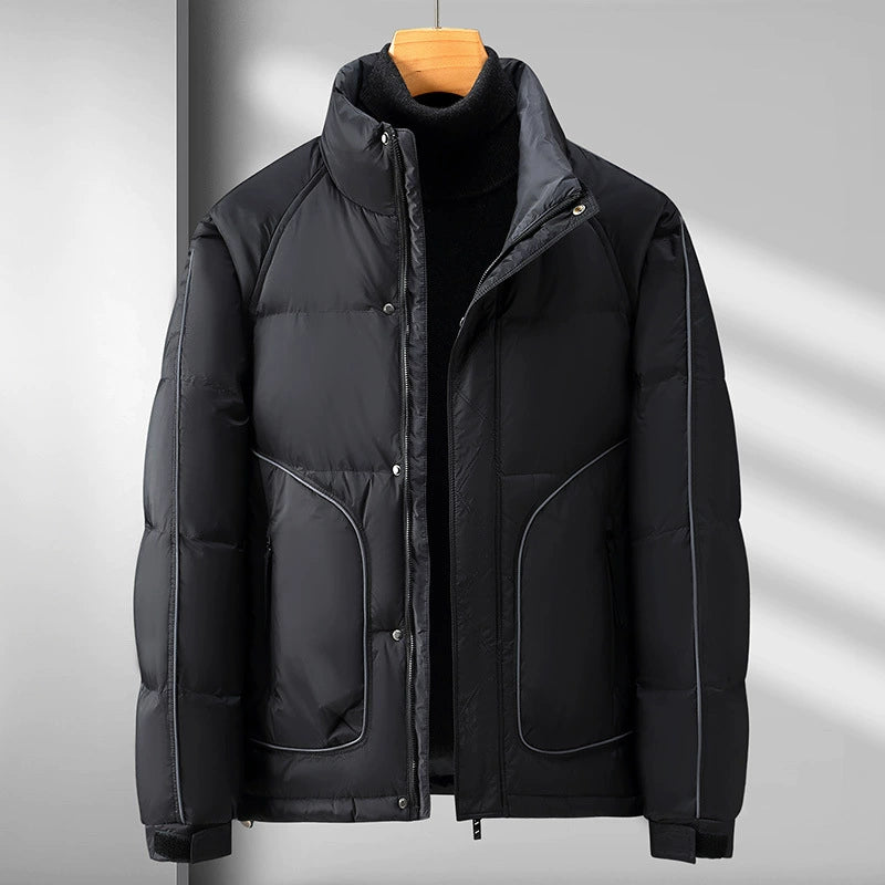 Calder Quilted Puffer Jacket – Stand Collar – Cropped Fit – Zip & Snap Closure