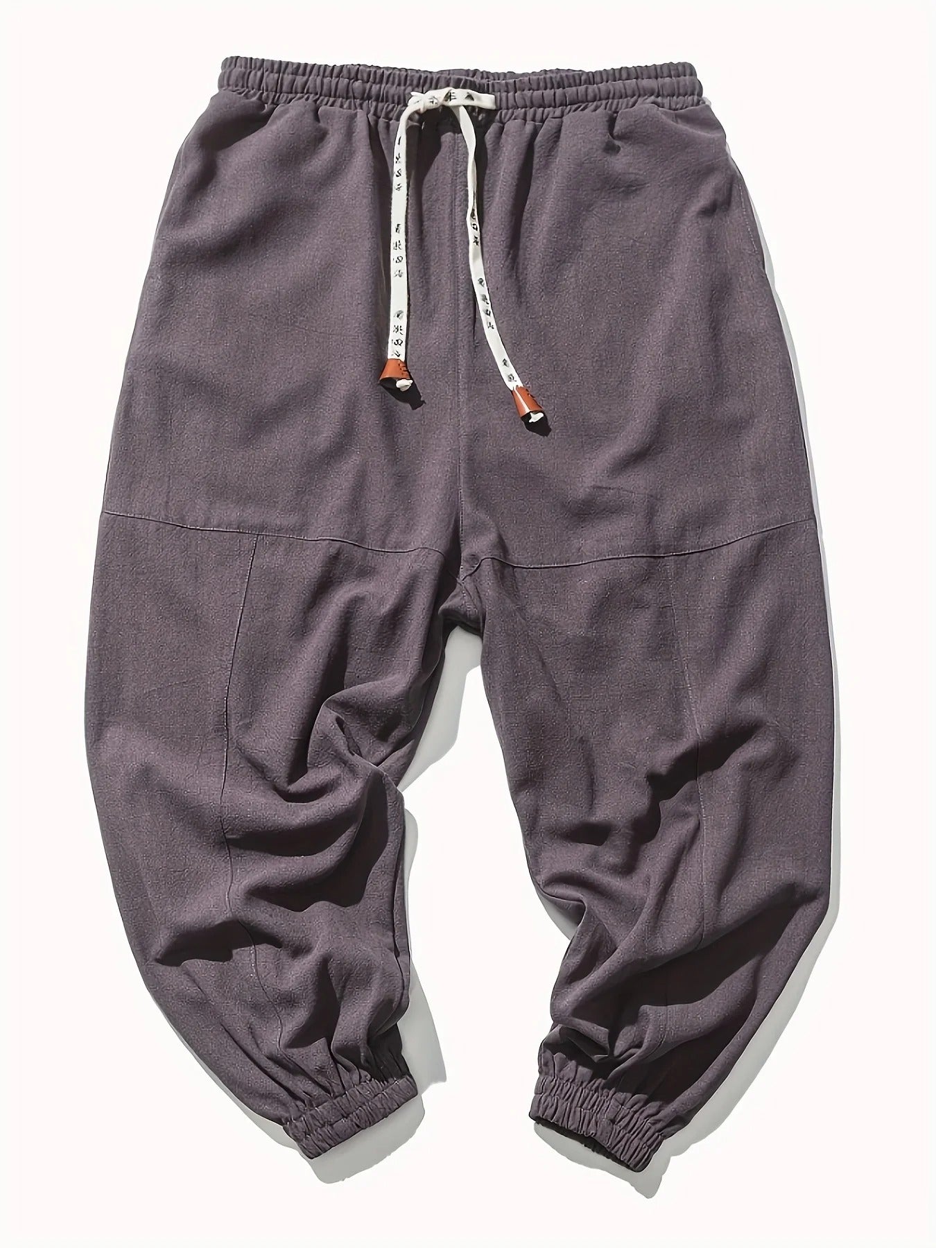 Designed with comfort at its core, these pants blend Japanese-inspired ease with a clean, tapered silhouette. The relaxed shape gives you room to move, while the ankle cuffs keep things sharp. Made from a soft, lightweight cotton blend, they’re ideal for warm weather and everyday wear—effortless, functional, and just different enough to stand out.